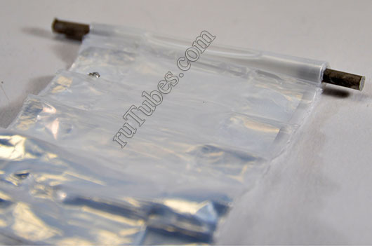 Both covers have teflon rings are mounted on the body of the capacitor with eyelets. In the center of the teflon ring pressed external pins.