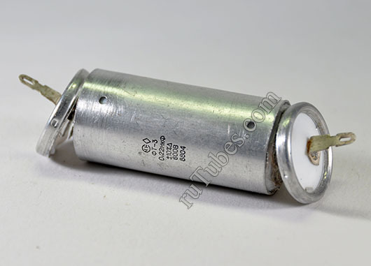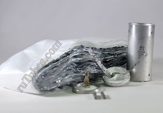 Both covers have teflon rings are mounted on the body of the capacitor with eyelets. In the center of the teflon ring pressed external pins.