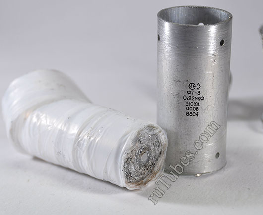 Many of our customers are always asking what Teflon capacitor and how it is made. For a visual example, we was sacrificed new capacitor FT-3 0.22uf 600V. Capacitors with other capacitances and voltage have a similar structure.