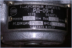 Reversive motor: RD-09-A, 127V, reduction 1/15.62, 78T/Min |