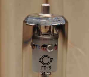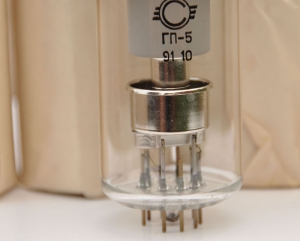 The Svetlana GP-5 (ГП-5) is a glass-envelope beam power triode intended for use as a shunt regulator or pulse modulator in high-voltage systems. It features anode operating voltage of 30 kV and a plate dissipation of 37.5 watts. Originally intended for color-TV voltage stabilization, the GP-5 is similar to the Telefunken ED500 and may be used to retrofit equipment which uses the American type 6BK4 or other high-voltage beam triodes.