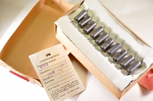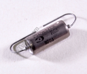 This is are high quality Russian PIO capacitors K40Y-9 made for military. The conductor is made of aluminum foil and the dielectric is oil saturated paper, glass sealed in a metal body. These capacitors provide excellent sonic characteristics, high tolerance is kept within a wide temperature range.